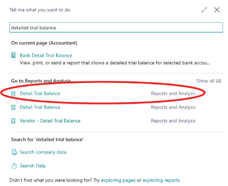 Search “Detailed Trial Balance” and select “Detailed Trial Balance Reporting and Analysis”